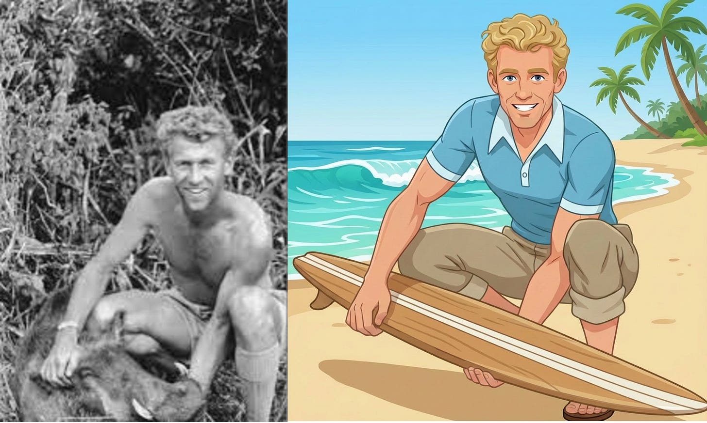 The late Dr. John Bindernagel is most well known as an older guy. But I always figured that in his heyday in the 1960s, he was a surfer guy. So I took the oldest photo of him that I could find and updated him in the spacetime realm as a young man. Behold, a young John Bindernagel.